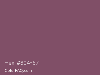 Hex #804f67 Color is a normal rose color and the nearest color is Twilight Lavender #8a496b. Hex code #804f67 and RGB value is rgb(128,79,103). In RGB color space, this color is composed of 50% red, 31% green, 40% blue, In CMYK color space, this color is composed of 0% cyan, 38% magenta, 20% yellow , 50% black , In HSL color space, this color has a hue angle of 331° , 24% saturation and 41% lightness.