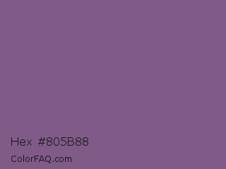 Hex #805b88 Color is a normal purple color and the nearest color is Chinese Violet #856088. Hex code #805b88 and RGB value is rgb(128,91,136). In RGB color space, this color is composed of 50% red, 36% green, 53% blue, In CMYK color space, this color is composed of 6% cyan, 33% magenta, 0% yellow , 47% black , In HSL color space, this color has a hue angle of 289° , 20% saturation and 45% lightness.