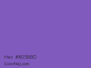Hex #805bbd Color is a normal violet color and the nearest color is Fuchsia Blue #7a58c1. Hex code #805bbd and RGB value is rgb(128,91,189). In RGB color space, this color is composed of 50% red, 36% green, 74% blue, In CMYK color space, this color is composed of 32% cyan, 52% magenta, 0% yellow , 26% black , In HSL color space, this color has a hue angle of 263° , 43% saturation and 55% lightness.