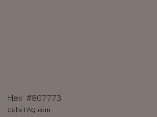 Hex #807773 Color is a normal orange color and the nearest color is Tapa #7b7874. Hex code #807773 and RGB value is rgb(128,119,115). In RGB color space, this color is composed of 50% red, 47% green, 45% blue, In CMYK color space, this color is composed of 0% cyan, 7% magenta, 10% yellow , 50% black , In HSL color space, this color has a hue angle of 18° , 5% saturation and 48% lightness.