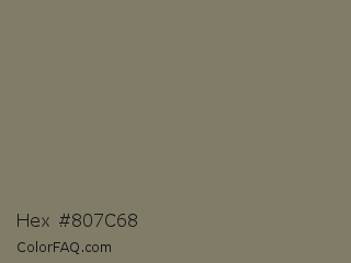 Hex #807c68 Color is a normal yellow color and the nearest color is Flax Smoke #7b8265. Hex code #807c68 and RGB value is rgb(128,124,104). In RGB color space, this color is composed of 50% red, 49% green, 41% blue, In CMYK color space, this color is composed of 0% cyan, 3% magenta, 19% yellow , 50% black , In HSL color space, this color has a hue angle of 50° , 10% saturation and 45% lightness.