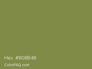 Hex #808b48 Color is a normal yellow color and the nearest color is Dark Tan #918151. Hex code #808b48 and RGB value is rgb(128,139,72). In RGB color space, this color is composed of 50% red, 55% green, 28% blue, In CMYK color space, this color is composed of 8% cyan, 0% magenta, 48% yellow , 45% black , In HSL color space, this color has a hue angle of 70° , 32% saturation and 41% lightness.