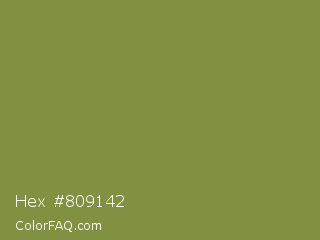 Hex #809142 Color is a normal lime color and the nearest color is Sycamore #908d39. Hex code #809142 and RGB value is rgb(128,145,66). In RGB color space, this color is composed of 50% red, 57% green, 26% blue, In CMYK color space, this color is composed of 12% cyan, 0% magenta, 54% yellow , 43% black , In HSL color space, this color has a hue angle of 73° , 37% saturation and 41% lightness.