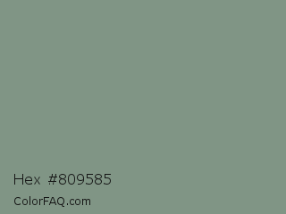 Hex #809585 Color is a normal green color and the nearest color is Spanish Green #819885. Hex code #809585 and RGB value is rgb(128,149,133). In RGB color space, this color is composed of 50% red, 58% green, 52% blue, In CMYK color space, this color is composed of 14% cyan, 0% magenta, 11% yellow , 42% black , In HSL color space, this color has a hue angle of 134° , 9% saturation and 54% lightness.
