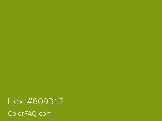 Hex #809b12 Color is a normal lime color and the nearest color is Trendy Green #7c881a. Hex code #809b12 and RGB value is rgb(128,155,18). In RGB color space, this color is composed of 50% red, 61% green, 7% blue, In CMYK color space, this color is composed of 17% cyan, 0% magenta, 88% yellow , 39% black , In HSL color space, this color has a hue angle of 72° , 79% saturation and 34% lightness.