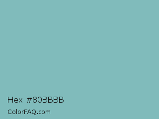 Hex #80bbbb Color is a light cyan color and the nearest color is Neptune #7cb7bb. Hex code #80bbbb and RGB value is rgb(128,187,187). In RGB color space, this color is composed of 50% red, 73% green, 73% blue, In CMYK color space, this color is composed of 32% cyan, 0% magenta, 0% yellow , 27% black , In HSL color space, this color has a hue angle of 180° , 30% saturation and 62% lightness.