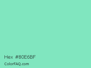 Hex #80e6bf Color is a light green color and the nearest color is Bermuda #7dd8c6. Hex code #80e6bf and RGB value is rgb(128,230,191). In RGB color space, this color is composed of 50% red, 90% green, 75% blue, In CMYK color space, this color is composed of 44% cyan, 0% magenta, 17% yellow , 10% black , In HSL color space, this color has a hue angle of 157° , 67% saturation and 70% lightness.