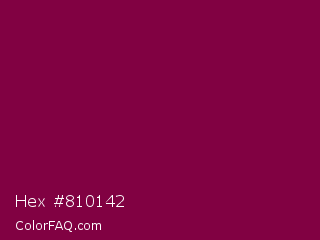 Hex #810142 Color is a dark rose color and the nearest color is Siren #7a013a. Hex code #810142 and RGB value is rgb(129,1,66). In RGB color space, this color is composed of 51% red, 0% green, 26% blue, In CMYK color space, this color is composed of 0% cyan, 99% magenta, 49% yellow , 49% black , In HSL color space, this color has a hue angle of 330° , 98% saturation and 25% lightness.