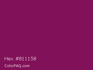 Hex #811158 Color is a dark magenta color and the nearest color is French Plum #811453. Hex code #811158 and RGB value is rgb(129,17,88). In RGB color space, this color is composed of 51% red, 7% green, 35% blue, In CMYK color space, this color is composed of 0% cyan, 87% magenta, 32% yellow , 49% black , In HSL color space, this color has a hue angle of 322° , 77% saturation and 29% lightness.