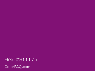Hex #811175 Color is a dark magenta color and the nearest color is Patriarch #800080. Hex code #811175 and RGB value is rgb(129,17,117). In RGB color space, this color is composed of 51% red, 7% green, 46% blue, In CMYK color space, this color is composed of 0% cyan, 87% magenta, 9% yellow , 49% black , In HSL color space, this color has a hue angle of 306° , 77% saturation and 29% lightness.