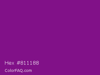 Hex #811188 Color is a dark magenta color and the nearest color is Mardi Gras #880085. Hex code #811188 and RGB value is rgb(129,17,136). In RGB color space, this color is composed of 51% red, 7% green, 53% blue, In CMYK color space, this color is composed of 5% cyan, 88% magenta, 0% yellow , 47% black , In HSL color space, this color has a hue angle of 296° , 78% saturation and 30% lightness.