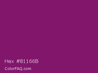 Hex #81166b Color is a dark magenta color and the nearest color is Midnight #702670. Hex code #81166b and RGB value is rgb(129,22,107). In RGB color space, this color is composed of 51% red, 9% green, 42% blue, In CMYK color space, this color is composed of 0% cyan, 83% magenta, 17% yellow , 49% black , In HSL color space, this color has a hue angle of 312° , 71% saturation and 30% lightness.