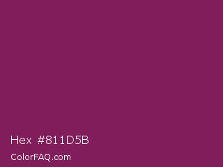 Hex #811d5b Color is a normal magenta color and the nearest color is Dark Raspberry #872657. Hex code #811d5b and RGB value is rgb(129,29,91). In RGB color space, this color is composed of 51% red, 11% green, 36% blue, In CMYK color space, this color is composed of 0% cyan, 78% magenta, 29% yellow , 49% black , In HSL color space, this color has a hue angle of 323° , 63% saturation and 31% lightness.
