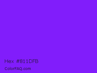 Hex #811dfb Color is a normal violet color and the nearest color is Violet Color Wheel #7f00ff. Hex code #811dfb and RGB value is rgb(129,29,251). In RGB color space, this color is composed of 51% red, 11% green, 98% blue, In CMYK color space, this color is composed of 49% cyan, 88% magenta, 0% yellow , 2% black , In HSL color space, this color has a hue angle of 267° , 97% saturation and 55% lightness.