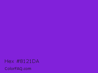 Hex #8121da Color is a normal purple color and the nearest color is Blue Violet #8a2be2. Hex code #8121da and RGB value is rgb(129,33,218). In RGB color space, this color is composed of 51% red, 13% green, 85% blue, In CMYK color space, this color is composed of 41% cyan, 85% magenta, 0% yellow , 15% black , In HSL color space, this color has a hue angle of 271° , 74% saturation and 49% lightness.