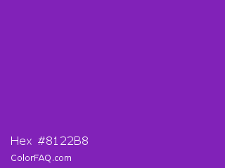 Hex #8122b8 Color is a normal purple color and the nearest color is Grape #6f2da8. Hex code #8122b8 and RGB value is rgb(129,34,184). In RGB color space, this color is composed of 51% red, 13% green, 72% blue, In CMYK color space, this color is composed of 30% cyan, 82% magenta, 0% yellow , 28% black , In HSL color space, this color has a hue angle of 278° , 69% saturation and 43% lightness.