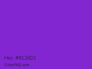Hex #8126d1 Color is a normal purple color and the nearest color is Blue Violet #8a2be2. Hex code #8126d1 and RGB value is rgb(129,38,209). In RGB color space, this color is composed of 51% red, 15% green, 82% blue, In CMYK color space, this color is composed of 38% cyan, 82% magenta, 0% yellow , 18% black , In HSL color space, this color has a hue angle of 272° , 69% saturation and 48% lightness.