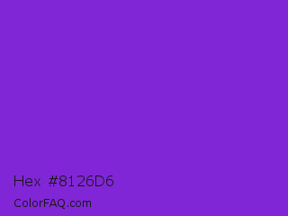 Hex #8126d6 Color is a normal purple color and the nearest color is Blue Violet #8a2be2. Hex code #8126d6 and RGB value is rgb(129,38,214). In RGB color space, this color is composed of 51% red, 15% green, 84% blue, In CMYK color space, this color is composed of 40% cyan, 82% magenta, 0% yellow , 16% black , In HSL color space, this color has a hue angle of 271° , 70% saturation and 49% lightness.