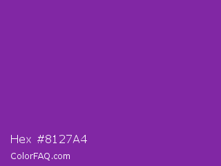 Hex #8127a4 Color is a normal purple color and the nearest color is Grape #6f2da8. Hex code #8127a4 and RGB value is rgb(129,39,164). In RGB color space, this color is composed of 51% red, 15% green, 64% blue, In CMYK color space, this color is composed of 21% cyan, 76% magenta, 0% yellow , 36% black , In HSL color space, this color has a hue angle of 283° , 62% saturation and 40% lightness.