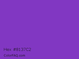 Hex #8137c2 Color is a normal purple color and the nearest color is Dark Orchid #9932cc. Hex code #8137c2 and RGB value is rgb(129,55,194). In RGB color space, this color is composed of 51% red, 22% green, 76% blue, In CMYK color space, this color is composed of 34% cyan, 72% magenta, 0% yellow , 24% black , In HSL color space, this color has a hue angle of 272° , 56% saturation and 49% lightness.