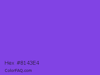 Hex #8143e4 Color is a normal violet color and the nearest color is Blue Violet #8a2be2. Hex code #8143e4 and RGB value is rgb(129,67,228). In RGB color space, this color is composed of 51% red, 26% green, 89% blue, In CMYK color space, this color is composed of 43% cyan, 71% magenta, 0% yellow , 11% black , In HSL color space, this color has a hue angle of 263° , 75% saturation and 58% lightness.