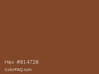 Hex #814728 Color is a normal orange color and the nearest color is Nutmeg #81422c. Hex code #814728 and RGB value is rgb(129,71,40). In RGB color space, this color is composed of 51% red, 28% green, 16% blue, In CMYK color space, this color is composed of 0% cyan, 45% magenta, 69% yellow , 49% black , In HSL color space, this color has a hue angle of 21° , 53% saturation and 33% lightness.