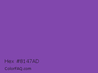Hex #8147ad Color is a normal purple color and the nearest color is Royal Purple #7851a9. Hex code #8147ad and RGB value is rgb(129,71,173). In RGB color space, this color is composed of 51% red, 28% green, 68% blue, In CMYK color space, this color is composed of 25% cyan, 59% magenta, 0% yellow , 32% black , In HSL color space, this color has a hue angle of 274° , 42% saturation and 48% lightness.