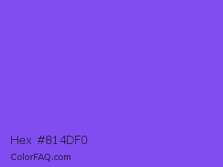 Hex #814df0 Color is a light indigo color and the nearest color is Navy Purple #9457eb. Hex code #814df0 and RGB value is rgb(129,77,240). In RGB color space, this color is composed of 51% red, 30% green, 94% blue, In CMYK color space, this color is composed of 46% cyan, 68% magenta, 0% yellow , 6% black , In HSL color space, this color has a hue angle of 259° , 84% saturation and 62% lightness.