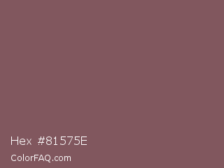 Hex #81575e Color is a normal red color and the nearest color is Deep Taupe #7e5e60. Hex code #81575e and RGB value is rgb(129,87,94). In RGB color space, this color is composed of 51% red, 34% green, 37% blue, In CMYK color space, this color is composed of 0% cyan, 33% magenta, 27% yellow , 49% black , In HSL color space, this color has a hue angle of 350° , 19% saturation and 42% lightness.