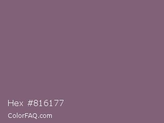 Hex #816177 Color is a normal magenta color and the nearest color is Falcon #7f626d. Hex code #816177 and RGB value is rgb(129,97,119). In RGB color space, this color is composed of 51% red, 38% green, 47% blue, In CMYK color space, this color is composed of 0% cyan, 25% magenta, 8% yellow , 49% black , In HSL color space, this color has a hue angle of 319° , 14% saturation and 44% lightness.