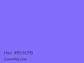 Hex #816cfb Color is a light indigo color and the nearest color is Medium Slate Blue #7b68ee. Hex code #816cfb and RGB value is rgb(129,108,251). In RGB color space, this color is composed of 51% red, 42% green, 98% blue, In CMYK color space, this color is composed of 49% cyan, 57% magenta, 0% yellow , 2% black , In HSL color space, this color has a hue angle of 249° , 95% saturation and 70% lightness.