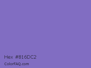 Hex #816dc2 Color is a normal indigo color and the nearest color is Middle Blue Purple #8b72be. Hex code #816dc2 and RGB value is rgb(129,109,194). In RGB color space, this color is composed of 51% red, 43% green, 76% blue, In CMYK color space, this color is composed of 34% cyan, 44% magenta, 0% yellow , 24% black , In HSL color space, this color has a hue angle of 254° , 41% saturation and 59% lightness.
