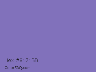 Hex #8171bb Color is a normal indigo color and the nearest color is Middle Blue Purple #8b72be. Hex code #8171bb and RGB value is rgb(129,113,187). In RGB color space, this color is composed of 51% red, 44% green, 73% blue, In CMYK color space, this color is composed of 31% cyan, 40% magenta, 0% yellow , 27% black , In HSL color space, this color has a hue angle of 253° , 35% saturation and 59% lightness.