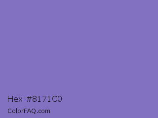Hex #8171c0 Color is a normal indigo color and the nearest color is Middle Blue Purple #8b72be. Hex code #8171c0 and RGB value is rgb(129,113,192). In RGB color space, this color is composed of 51% red, 44% green, 75% blue, In CMYK color space, this color is composed of 33% cyan, 41% magenta, 0% yellow , 25% black , In HSL color space, this color has a hue angle of 252° , 39% saturation and 60% lightness.