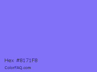 Hex #8171f8 Color is a light indigo color and the nearest color is Medium Slate Blue #7b68ee. Hex code #8171f8 and RGB value is rgb(129,113,248). In RGB color space, this color is composed of 51% red, 44% green, 97% blue, In CMYK color space, this color is composed of 48% cyan, 54% magenta, 0% yellow , 3% black , In HSL color space, this color has a hue angle of 247° , 91% saturation and 71% lightness.