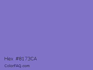 Hex #8173ca Color is a light indigo color and the nearest color is Moody Blue #7f76d3. Hex code #8173ca and RGB value is rgb(129,115,202). In RGB color space, this color is composed of 51% red, 45% green, 79% blue, In CMYK color space, this color is composed of 36% cyan, 43% magenta, 0% yellow , 21% black , In HSL color space, this color has a hue angle of 250° , 45% saturation and 62% lightness.
