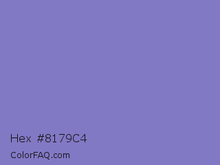 Hex #8179c4 Color is a light indigo color and the nearest color is Ube #8878c3. Hex code #8179c4 and RGB value is rgb(129,121,196). In RGB color space, this color is composed of 51% red, 47% green, 77% blue, In CMYK color space, this color is composed of 34% cyan, 38% magenta, 0% yellow , 23% black , In HSL color space, this color has a hue angle of 246° , 39% saturation and 62% lightness.