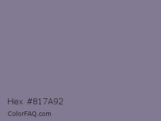 Hex #817a92 Color is a normal indigo color and the nearest color is Waterloo #7b7c94. Hex code #817a92 and RGB value is rgb(129,122,146). In RGB color space, this color is composed of 51% red, 48% green, 57% blue, In CMYK color space, this color is composed of 12% cyan, 16% magenta, 0% yellow , 43% black , In HSL color space, this color has a hue angle of 258° , 10% saturation and 53% lightness.