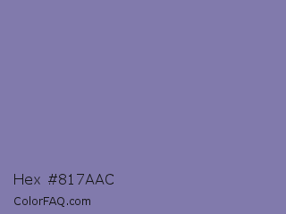 Hex #817aac Color is a normal indigo color and the nearest color is Wild Blue Yonder #7a89b8. Hex code #817aac and RGB value is rgb(129,122,172). In RGB color space, this color is composed of 51% red, 48% green, 67% blue, In CMYK color space, this color is composed of 25% cyan, 29% magenta, 0% yellow , 33% black , In HSL color space, this color has a hue angle of 248° , 23% saturation and 58% lightness.