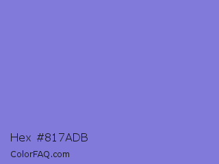 Hex #817adb Color is a light indigo color and the nearest color is Chetwode Blue #8581d9. Hex code #817adb and RGB value is rgb(129,122,219). In RGB color space, this color is composed of 51% red, 48% green, 86% blue, In CMYK color space, this color is composed of 41% cyan, 44% magenta, 0% yellow , 14% black , In HSL color space, this color has a hue angle of 244° , 57% saturation and 67% lightness.