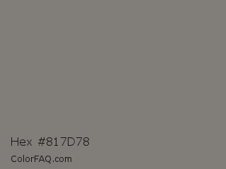 Hex #817d78 Color is a normal orange color and the nearest color is Friar Gray #807e79. Hex code #817d78 and RGB value is rgb(129,125,120). In RGB color space, this color is composed of 51% red, 49% green, 47% blue, In CMYK color space, this color is composed of 0% cyan, 3% magenta, 7% yellow , 49% black , In HSL color space, this color has a hue angle of 33° , 4% saturation and 49% lightness.