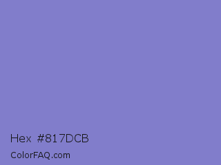 Hex #817dcb Color is a light indigo color and the nearest color is Moody Blue #7f76d3. Hex code #817dcb and RGB value is rgb(129,125,203). In RGB color space, this color is composed of 51% red, 49% green, 80% blue, In CMYK color space, this color is composed of 36% cyan, 38% magenta, 0% yellow , 20% black , In HSL color space, this color has a hue angle of 243° , 43% saturation and 64% lightness.