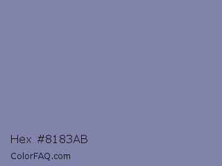 Hex #8183ab Color is a normal blue color and the nearest color is Shadow Blue #778ba5. Hex code #8183ab and RGB value is rgb(129,131,171). In RGB color space, this color is composed of 51% red, 51% green, 67% blue, In CMYK color space, this color is composed of 25% cyan, 23% magenta, 0% yellow , 33% black , In HSL color space, this color has a hue angle of 237° , 20% saturation and 59% lightness.