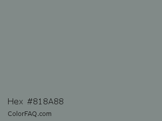 Hex #818a88 Color is a normal cyan color and the nearest color is Gunsmoke #828685. Hex code #818a88 and RGB value is rgb(129,138,136). In RGB color space, this color is composed of 51% red, 54% green, 53% blue, In CMYK color space, this color is composed of 7% cyan, 0% magenta, 1% yellow , 46% black , In HSL color space, this color has a hue angle of 167° , 4% saturation and 52% lightness.