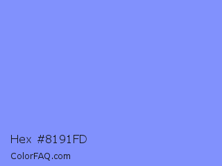 Hex #8191fd Color is a light blue color and the nearest color is Portage #8b9fee. Hex code #8191fd and RGB value is rgb(129,145,253). In RGB color space, this color is composed of 51% red, 57% green, 99% blue, In CMYK color space, this color is composed of 49% cyan, 43% magenta, 0% yellow , 1% black , In HSL color space, this color has a hue angle of 232° , 97% saturation and 75% lightness.