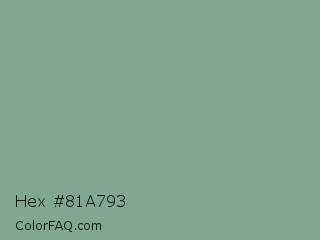 Hex #81a793 Color is a normal green color and the nearest color is Bay Leaf #7da98d. Hex code #81a793 and RGB value is rgb(129,167,147). In RGB color space, this color is composed of 51% red, 65% green, 58% blue, In CMYK color space, this color is composed of 23% cyan, 0% magenta, 12% yellow , 35% black , In HSL color space, this color has a hue angle of 148° , 18% saturation and 58% lightness.
