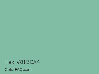 Hex #81bca4 Color is a light green color and the nearest color is Acapulco #7cb0a1. Hex code #81bca4 and RGB value is rgb(129,188,164). In RGB color space, this color is composed of 51% red, 74% green, 64% blue, In CMYK color space, this color is composed of 31% cyan, 0% magenta, 13% yellow , 26% black , In HSL color space, this color has a hue angle of 156° , 31% saturation and 62% lightness.