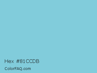 Hex #81ccdb Color is a light cyan color and the nearest color is Middle Blue #7ed4e6. Hex code #81ccdb and RGB value is rgb(129,204,219). In RGB color space, this color is composed of 51% red, 80% green, 86% blue, In CMYK color space, this color is composed of 41% cyan, 7% magenta, 0% yellow , 14% black , In HSL color space, this color has a hue angle of 190° , 56% saturation and 68% lightness.