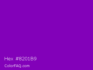 Hex #8201b9 Color is a normal purple color and the nearest color is Violet RYB #8601af. Hex code #8201b9 and RGB value is rgb(130,1,185). In RGB color space, this color is composed of 51% red, 0% green, 73% blue, In CMYK color space, this color is composed of 30% cyan, 99% magenta, 0% yellow , 27% black , In HSL color space, this color has a hue angle of 282° , 99% saturation and 36% lightness.