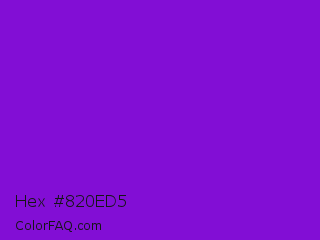 Hex #820ed5 Color is a normal purple color and the nearest color is French Violet #8806ce. Hex code #820ed5 and RGB value is rgb(130,14,213). In RGB color space, this color is composed of 51% red, 5% green, 84% blue, In CMYK color space, this color is composed of 39% cyan, 93% magenta, 0% yellow , 16% black , In HSL color space, this color has a hue angle of 275° , 88% saturation and 45% lightness.